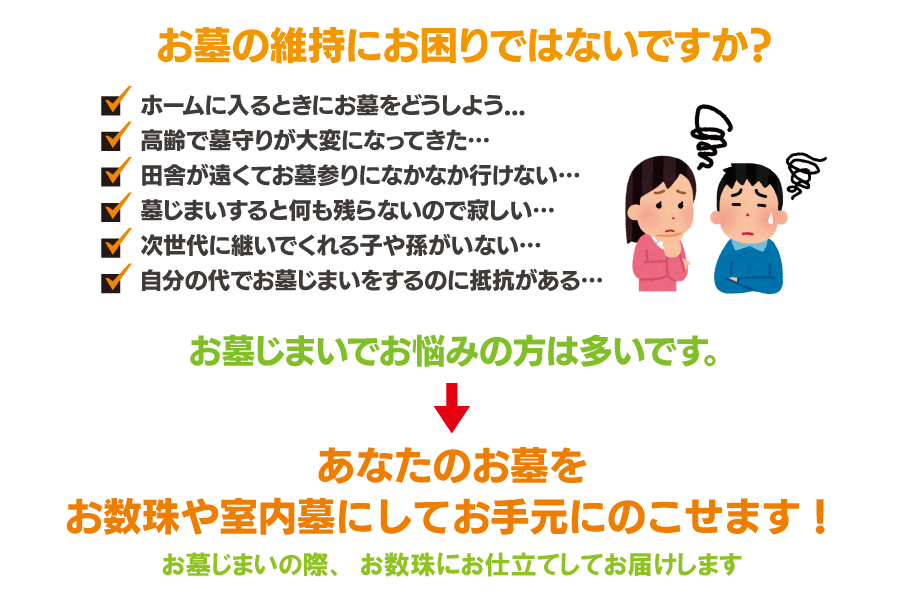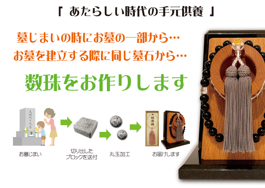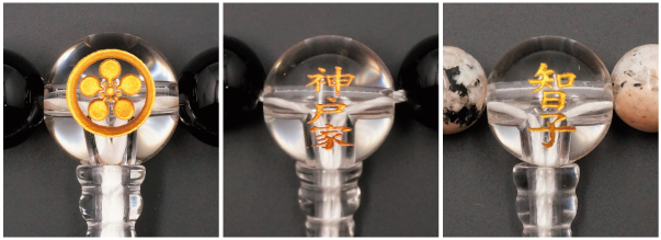 | ・字彫りオプション ご家族それぞれのお名前や家紋、家族名を 数珠の親玉に彫り込むことができます *スタンダードプラン、プレミアムプランのみ |