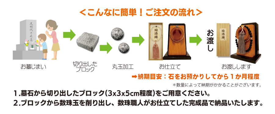 男性:墓石玉12+8mm黒御影石10mm /水晶仕立て