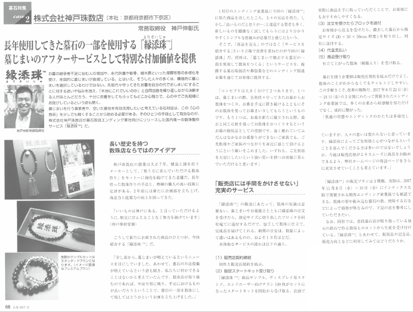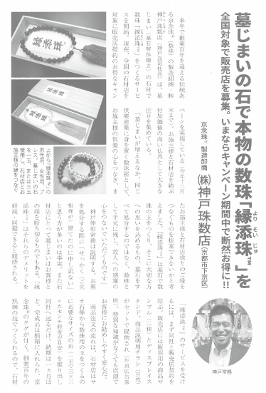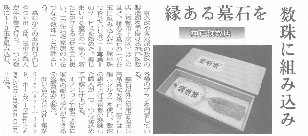 創業1918年の数珠製造卸 神戸珠数店 京都の地で100年にわたり数珠の製造卸を営む老舗数珠専門店。 高品質な京都製数珠「京念珠®」は全国の仏具店、寺院で取り扱われています。 伝統をベースに自社オリジナル数珠製品を製造している、日本でも数少ない数珠専門店です。 |